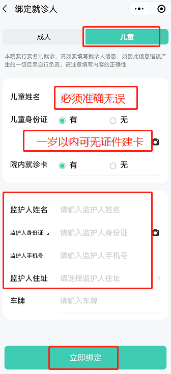 1.新建卡号:可支持一周岁内儿童进行无证件建卡,无证件建卡需要准确输入监护人信息。