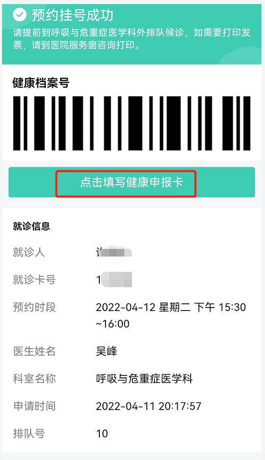1.为前置诊疗流程,减少入院繁琐流程,请在预约成功后填写健康申报卡。