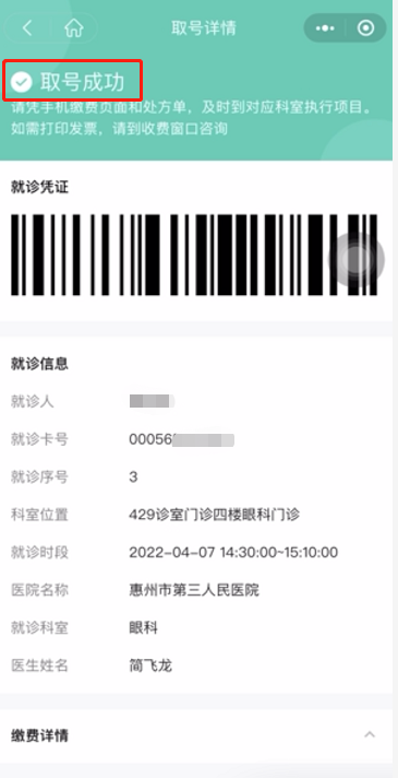 扫码关注“惠州市第三人民医院”服务号